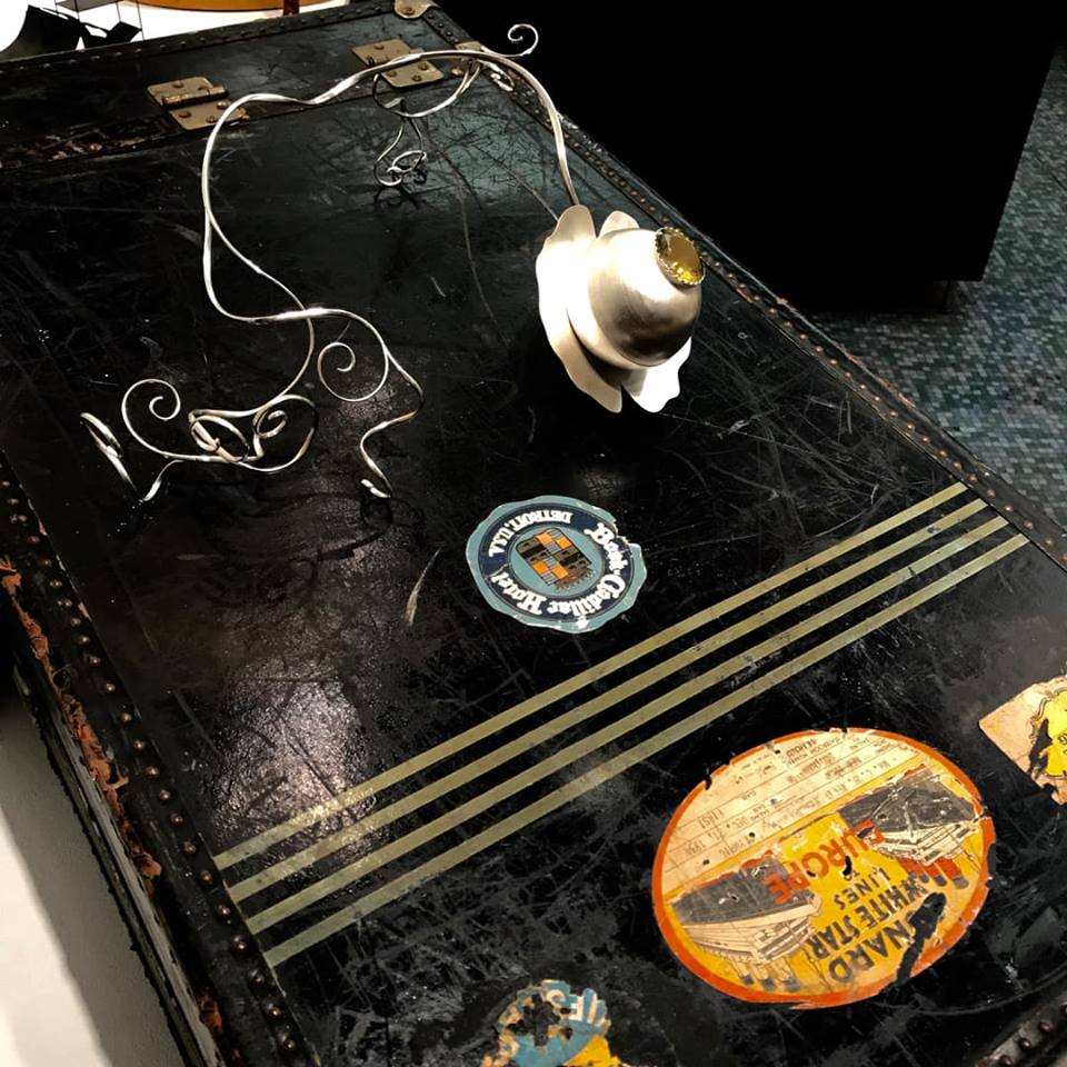 Petronellas stora halssmycke i silver och citronkvarts på en gammal Amerika koffert!