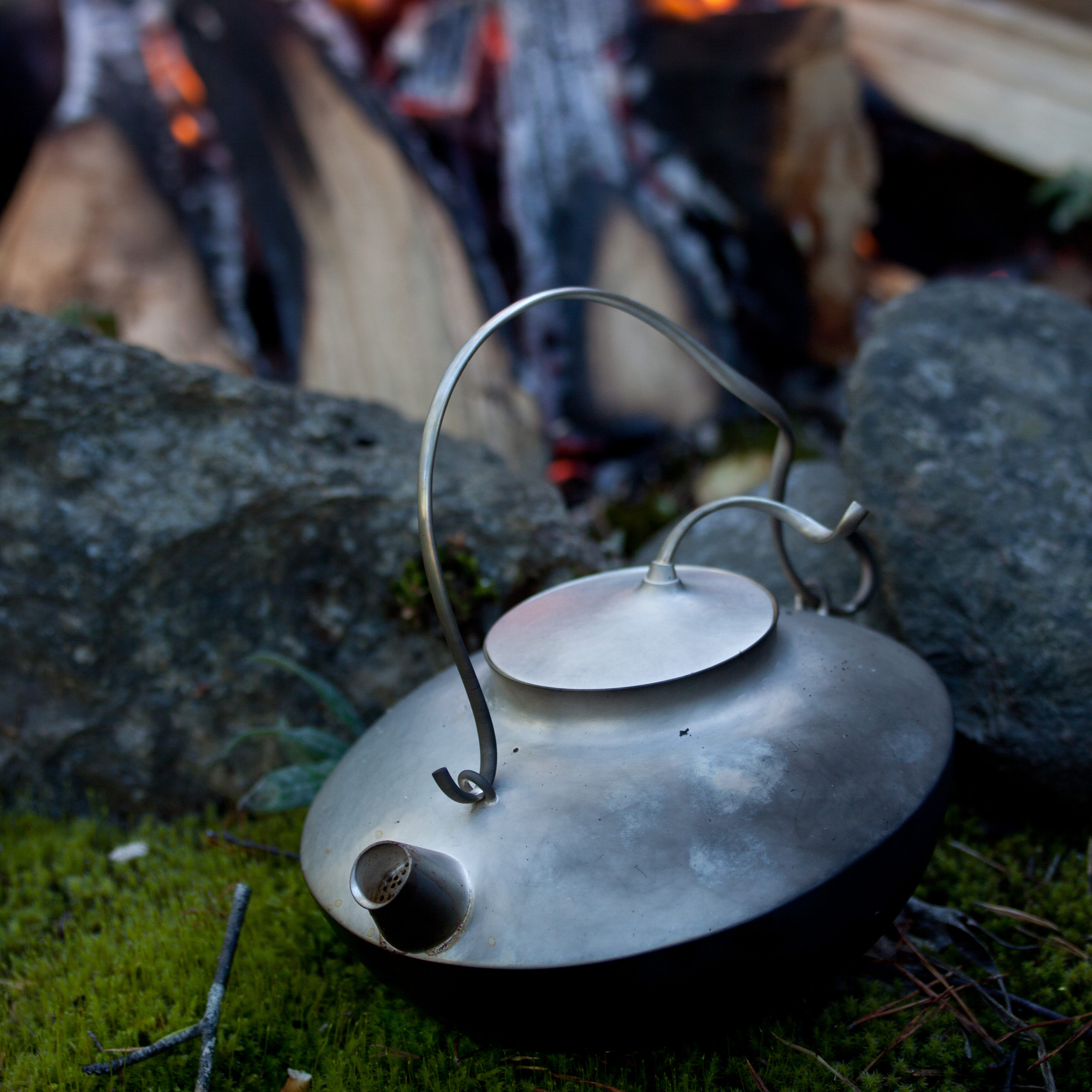 Inspirationen kommer från skogen och barndomen. Minnen av lägereldar, kaffepannan över elden, kaffeburken av näver och doften av rök. Det var stunder utan stress. Då varje rörelse var en njutning i nuet. Hon vill betona silvrets brukbarhet. Det ska beröras, diskas, slitas, få patina och skänka glädje. Materialet fungerar bättre då. Hennes kannor vill bli sotiga och diskas i en bäck, bland ormbunkar och fuktiga mossor
