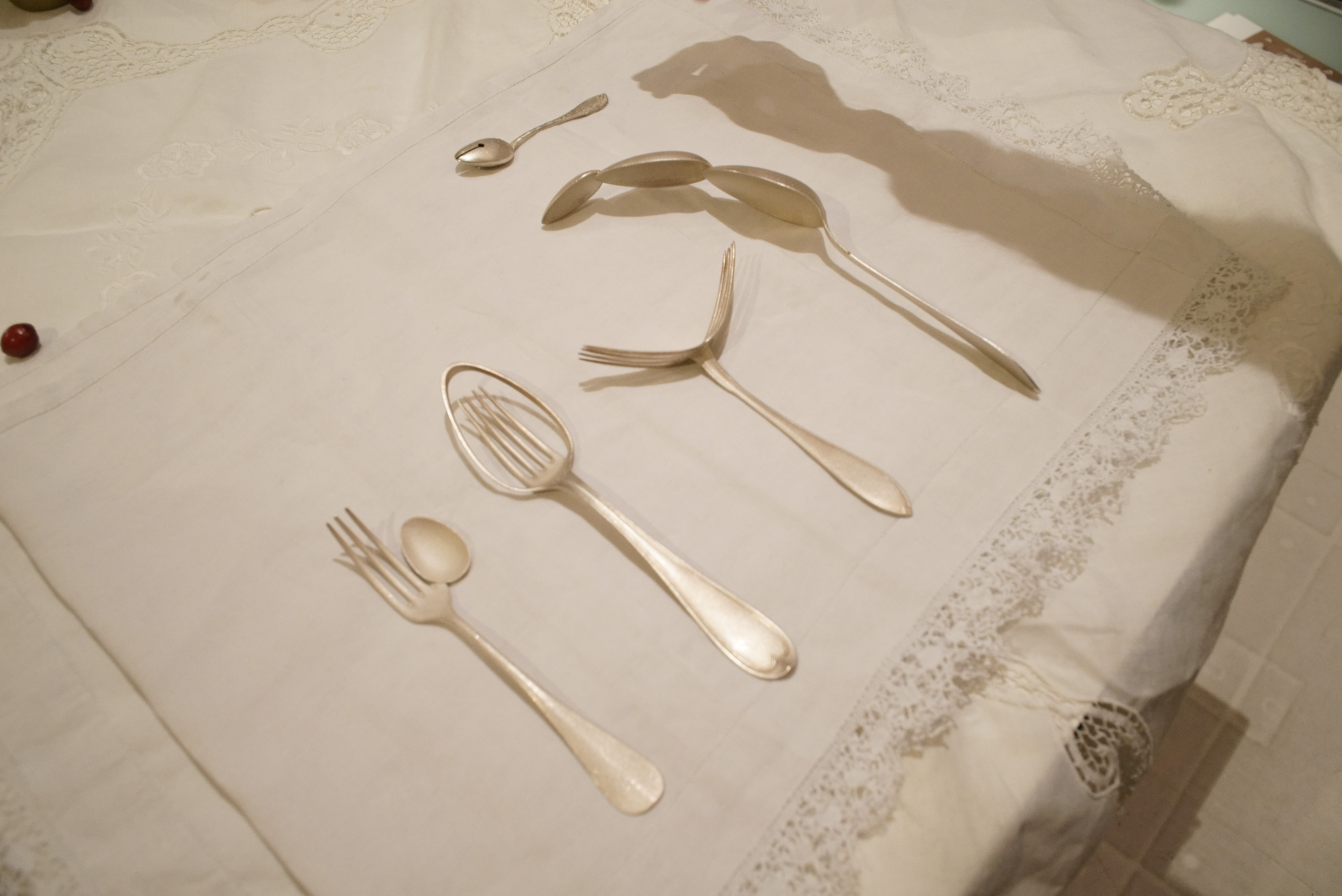 Båda verken reflekterar och undersöker vad korpus är idag, silverföremål i samtid. Vilken roll kan de spela och vad har de för funktion i vardagen. Tobias kalebass anspelar både på lappverk, lagat och när man applicerar silver på t. ex. strutsägg, snäckor och andra naturens underverk i som tidigare gjorts i historiens skattkammare. Klaras arbeten har vi sett arbeta måledvetet in mot köket och vardagen i hemmet.