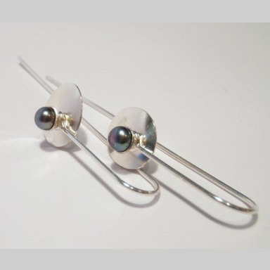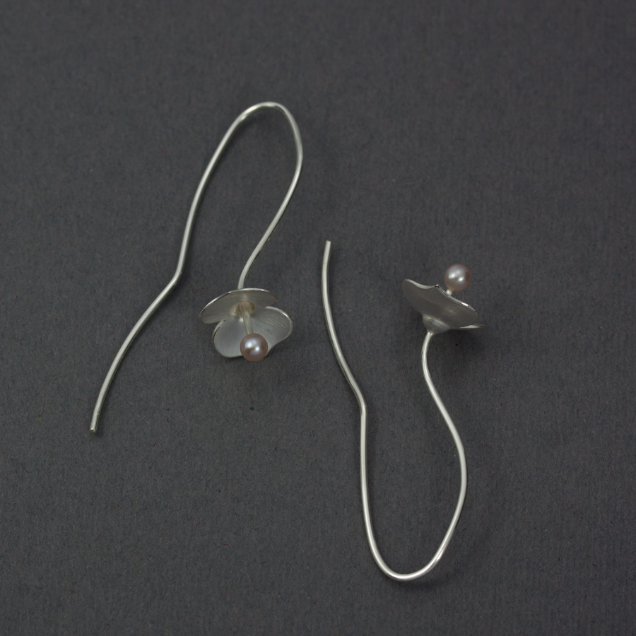 Sammetshortensia i silver på silverkedja med rosa söttvatten pärla.