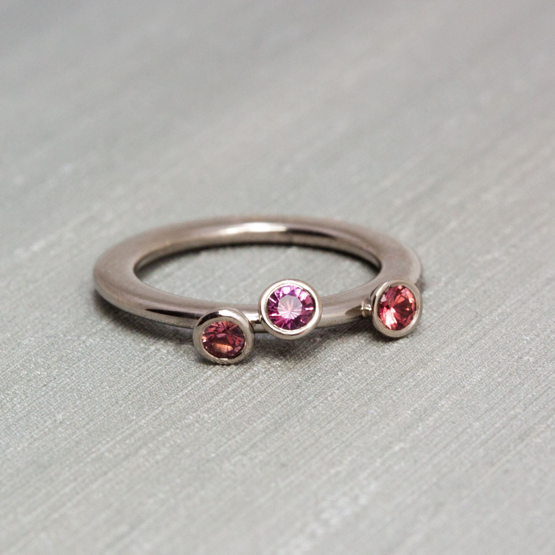 Vigselring i vitguld med etiska safirer av Petronella Eriksson.