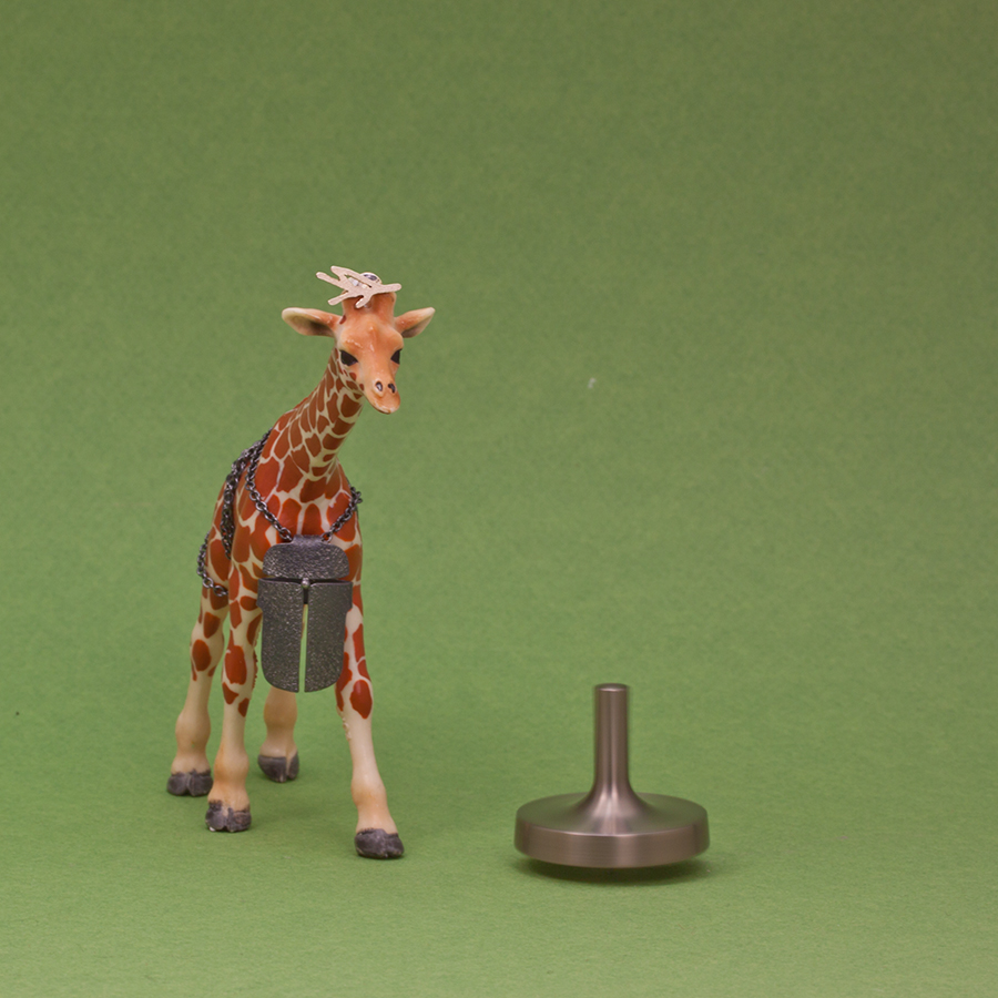 Lilla giraffen har Makis örhänge på huvudet och eriks halsmycke om halsen. Den har sällskap av Tobias titansnurra.