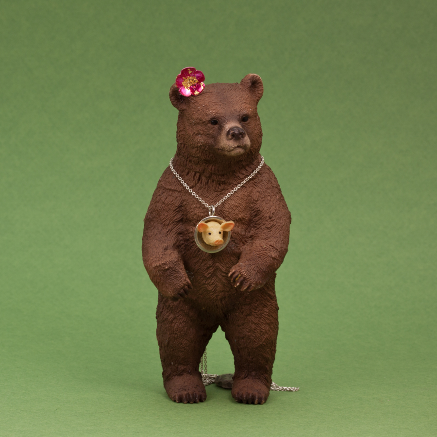 Björnen i Lenas Grishalsband och med Pernillas blomma bakom örat.